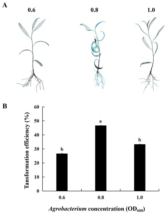 2.2. Effect of Agrobacterium Concentration on Transient Transformation Efficiency of S. psammophila