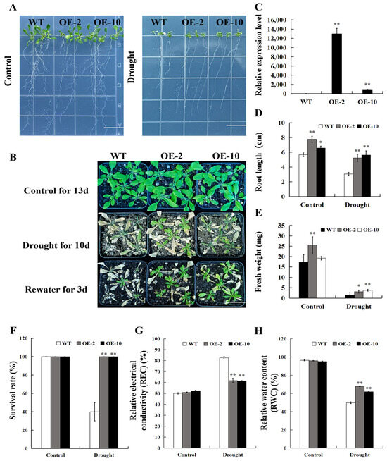 - Zhao, J.; Yang, Y.; Jia, X.; Meng, H.; Diao, K.; Zheng, G.; Li, T.; Li, J. Ectopic expression of SpABR1 positively regulates drought stress tolerance through the ABA-dependent pathway and by promoting ROS scavenging in Arabidopsis. Environ. Exp. Bot. 2023, 215, 105491. [Google Scholar] [CrossRef]