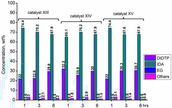 - Muszyński, M.; Nowicki, J.; Krasuska, A.; Nowakowska-Bogdan, E.; Bartoszewicz, M.; Długosz, M.; Zygadło, M.; Dudek, G. Synthesis of Bis(2-Ethylhexyl) Terephthalate from Waste Poly(Ethylene Terephthalate) Catalyzed by Tin Catalysts. Polym. Degrad. Stab. 2023, 218, 110592. [Google Scholar] [CrossRef]
