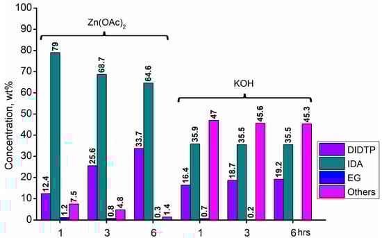 - Khalaf, H.I.; Hasan, O.A. Effect of Quaternary Ammonium Salt as a Phase Transfer Catalyst for the Microwave Depolymerization of Polyethylene Terephthalate Waste Bottles. Chem. Eng. J. 2012, 192, 45–48. [Google Scholar] [CrossRef]