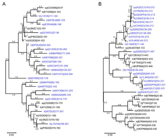 64. Hulo, N.; Bairoch, A.; Bulliard, V.; Cerutti, L.; Cuche, B.A.; De Castro, E.; Lachaize, C.; Langendijk-Genevaux, P.S.; Sigrist, C.J.A. The 20 years of PROSITE. Nucleic Acids Res. 2008, 36, D245–D249. [Google Scholar] [CrossRef] [PubMed]