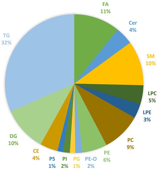 2.3. LC-QTOF-MS Analysis Revealed Alterations in TG Species
