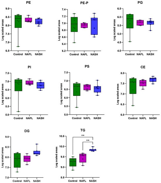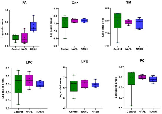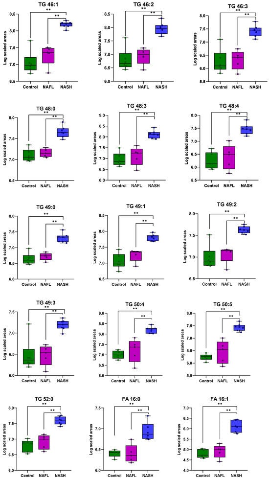2.2. Liver Lipid Profile in Patients with NAFLD and Controls