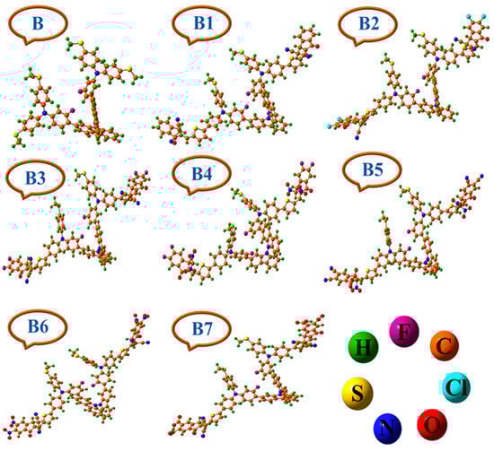 Figure 3 displays the designed and optimized architectures of B and B1–B7.