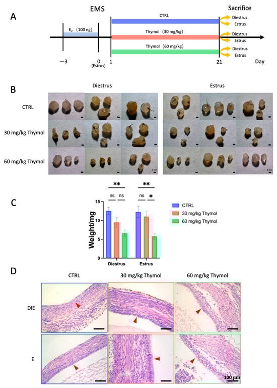 4.3. Induction of Pregnancy and Treatment with Thymol