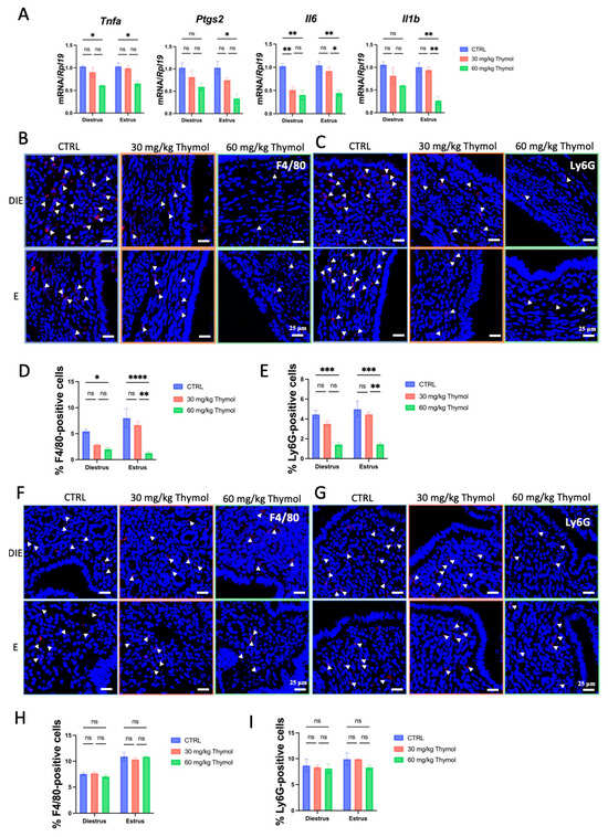2.2. Thymol Mitigates the Inflammatory Reaction in Endometriotic Lesions