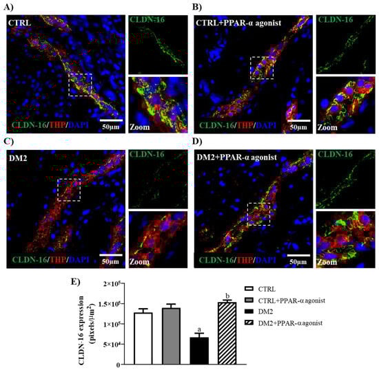 Rosas-Martínez, L.; Rodríguez-Muñoz, R.; Namorado-Tonix, M.d.C.; Missirlis, F.; del Valle-Mondragón, L.; Sánchez-Mendoza, A.; Reyes-Sánchez, J.L.; Cervantes-Pérez, L.G. Peroxisome Proliferator-Activated Receptor Alpha Stimulation Preserves Renal Tight Junction Components in a Rat Model of Early-Stage Diabetic Nephropathy. Int. J. Mol. Sci. 2024, 25, 13152. https://doi.org/10.3390/ijms252313152