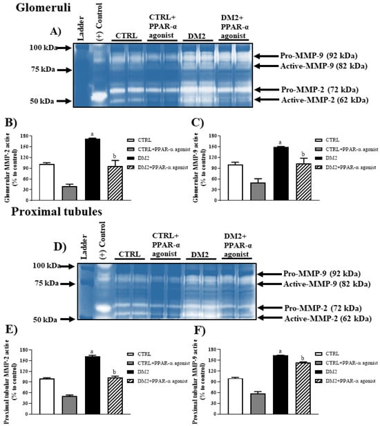 2.5. Diabetes-Induced Oxidative Stress and Activity of MMP-2 and MMP-9 in the Kidney Were Improved by PPAR-α Agonist Treatment