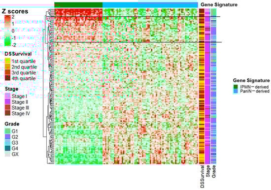 - Sato, N.; Fukushima, N.; Maitra, A.; Iacobuzio-Donahue, C.A.; van Heek, N.T.; Cameron, J.L.; Yeo, C.J.; Hruban, R.H.; Goggins, M. Gene expression profiling identifies genes associated with invasive intraductal papillary mucinous neoplasms of the pancreas. Am. J. Pathol. 2004, 164, 903–914. [Google Scholar] [CrossRef] [PubMed]