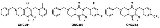 Emblematic imipridones engaged in clinical (ONC201 and ONC206) or preclinical (ONC212) studies.