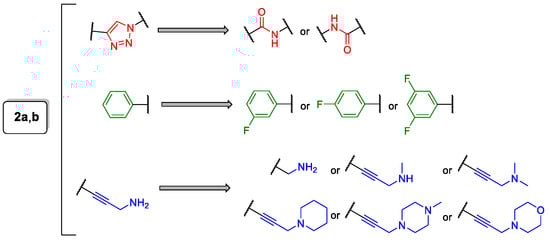 Envisaged fragment refinements in 2a,b, the members of the first set of the targeted hybrids that proved to be prominently efficient in the primary viability screening.