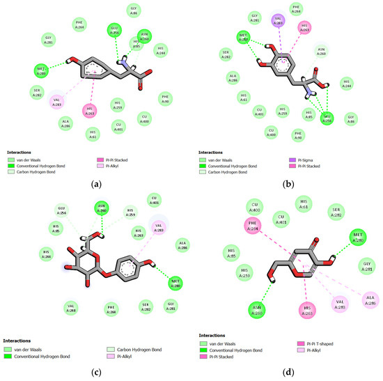 4.4.2. Molecular Docking Study for Mushroom Tyrosinase