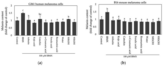 - Linsaenkart, P.; Ruksiriwanich, W.; Sringarm, K.; Arjin, C.; Rachtanapun, P.; Chittasupho, C.; Castagnini, J.M.; Chutoprapat, R.; Mueller, A.; Boonpisuttinant, K. Anti-melanogenic potential of Malabar spinach (Basella alba) in human melanoma cells with oxidative stress suppression and anti-inflammatory activities. Foods 2024, 13, 2943. [Google Scholar] [CrossRef]