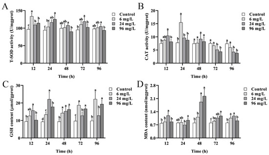 | Control | 6 mg/L | 24 mg/L | 96 mg/L | |
