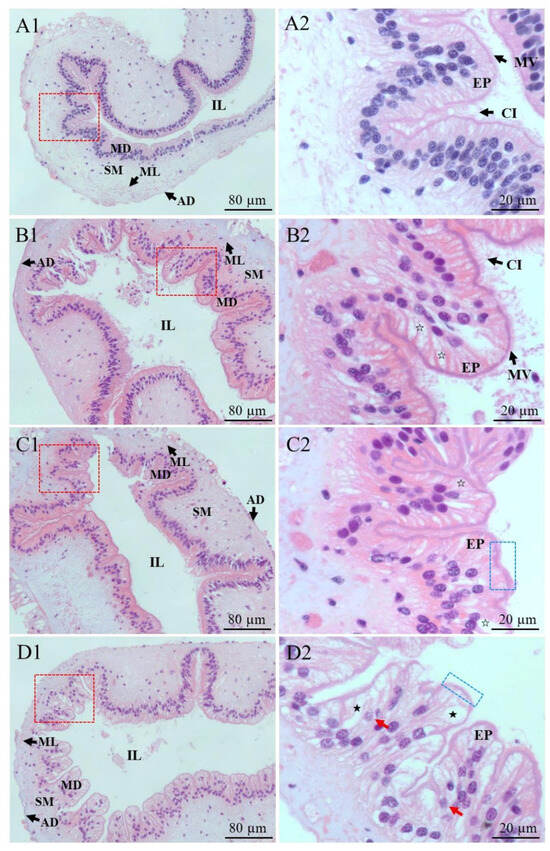 2.2. Changes of Intestinal Structure of P. esculenta Under Cd Stress