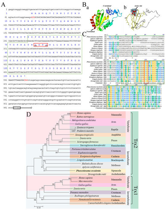 - Meng, J.J.; Gao, X.M.; Luo, S.Y.; Lin, C.W.; Du, C.; Hou, C.C.; Wang, J.Q.; Jin, S.; Tang, D.J.; Zhang, C.D.; et al. Cloning, Functional Characterization and Response to Cadmium Stress of the Thioredoxin-like Protein 1 Gene from Phascolosoma esculenta. Int. J. Mol. Sci. 2021, 23, 332. [Google Scholar] [CrossRef]