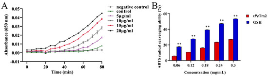 2.6. In Vitro Antioxidant Activity of rPeTrx2
