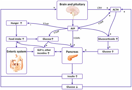 ACTH; brain; cardiovascular system; diabetes mellitus; GLP-1; glucose; insulin; metabolism; obesity; vasopressin 1. Introduction