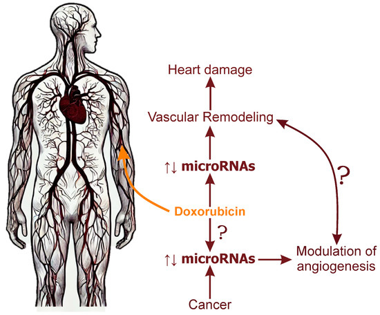 Thus, the interactions between microRNAs and their target genes create a complex regulatory network capable of modulating processes such as the proliferation of vascular smooth muscle cells, their migration, apoptosis, and extracellular matrix remodeling, which are crucial in the pathogenesis of several serious cardiovascular diseases. Elucidating the intricate roles of specific microRNAs in cardiovascular pathological remodeling is crucial for advancing medical knowledge. This deeper understanding will pave the way for innovative therapeutic approaches, potentially leading to the development of novel microRNA-based treatments. Ultimately, leveraging the potential of microRNAs can lead to more precise and effective treatments, offering hope for improved outcomes in patients with cardiovascular conditions, including those developed as a result of chemotherapy involving DOX.
