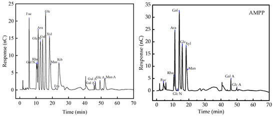 64], the content of uronic acid was determined to be 26.75% using a UV–visible spectrophotometer (UV-5500PC, METASH, Shanghai, China). The molecular weight (Mw) was determined by high-performance gel permeation chromatography. The monosaccharide composition of the polysaccharides was determined by ion chromatography [