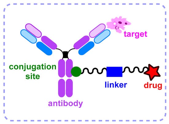One of the most important aspects of ADC design is the conjugation of the linker to the antibody. Since the inception of the field, relatively few conjugation methods have been developed. Some of the first and most popular are conjugation to the amino groups of lysine residues within the antibody using NHS esters and conjugation to the reduced cysteines of the disulfide bonds involved in maintaining the structure of the antibody using maleimides. These approaches are well established in ADC drugs on the market; 11 of the 12 conjugates approved by the FDA for use in patients to date (not including AidixiTM from RemeGen, which is currently only approved in China) [13] have been made using these approaches. However, despite the apparent simplicity and efficiency of these approaches, they have a number of drawbacks. One of them is the high heterogeneity of the resulting conjugates, i.e., the presence of antibodies with various drug-to-antibody ratios and even unconjugated antibodies in the mixture. This leads to a deterioration of the pharmacological properties; in particular, the more loaded species are eliminated faster and can damage liver cells. On the other hand, unconjugated antibodies compete with conjugates for binding to the target and also reduce the efficacy of the conjugate.