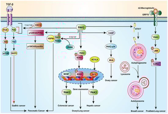 A summary of PAK2′s role and mechanism of action in various types of cancer.