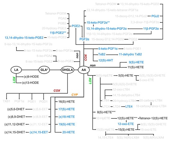 - Dennis, E.A.; Norris, P.C. Eicosanoid storm in infection and inflammation. Nat. Rev. Immunol. 2015, 15, 511–523. [Google Scholar] [CrossRef]