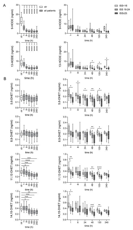 2.7. Oxylipins Generated by CYP Activity: Lower Levels of Several DHETs After Very Severe Injury