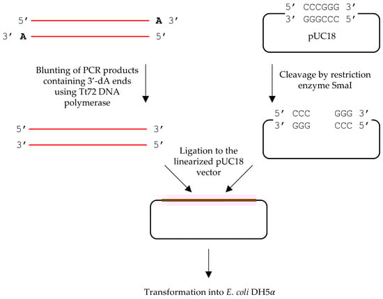 - Costa, G.L.; Weiner, M.P. Polishing with T4 or Pfu Polymerase Increases the Efficiency of Cloning of PCR Fragments. Nucleic Acids Res. 1994, 22, 2423. [Google Scholar] [CrossRef] [PubMed][Green Version]