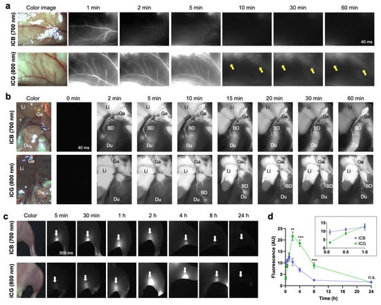 APA StyleYamashita, A., Jang, P., Bao, K., Kashiwagi, S., Frangioni, J. V., & Choi, H. S. (2024). Indocyanine Blue (ICB) as a Functional Alternative to Indocyanine Green (ICG) for Enhanced 700 nm NIR Imaging. International Journal of Molecular Sciences, 25(24), 13547. https://doi.org/10.3390/ijms252413547