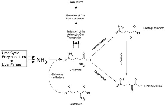 - Albrecht, J.; Norenberg, M.D. Glutamine: A Trojan Horse in Ammonia Neurotoxicity. Hepatology 2006, 44, 788–794. [Google Scholar] [CrossRef] [PubMed]