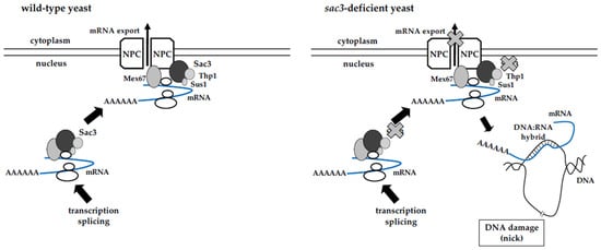- González-Aguilera, C.; Tous, C.; Gómez-González, B.; Huertas, P.; Luna, R.; Aguilera, A. The THP1-SAC3-SUS1-CDC31 Complex Works in Transcription Elongation-mRNA Export Preventing RNA-Mediated Genome Instability. Mol. Biol. Cell 2008, 19, 4310–4318. [Google Scholar] [CrossRef] [PubMed]
