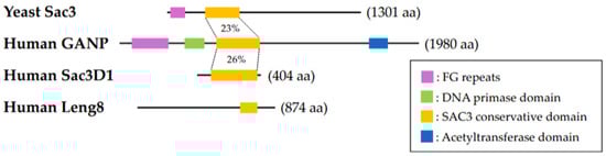 - Bauer, A.; Kölling, R. The SAC3 Gene Encodes a Nuclear Protein Required for Normal Progression of Mitosis. J. Cell Sci. 1996, 109, 1575–1583. [Google Scholar] [CrossRef]
