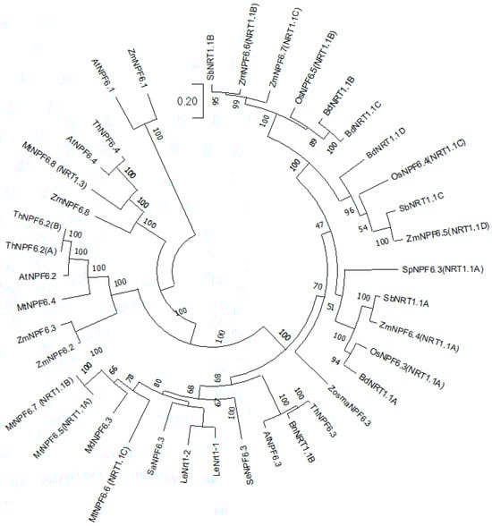 - Wen, Z.; Tyerman, S.D.; Dechorgnat, J.; Ovchinnikova, E.; Dhugga, K.S.; Kaiser, B.N. Maize NPF6 proteins are homologs of arabidopsis CHL1 that are selective for both nitrate and chloride. Plant Cell 2017, 29, 2581–2596. [Google Scholar] [CrossRef] [PubMed]