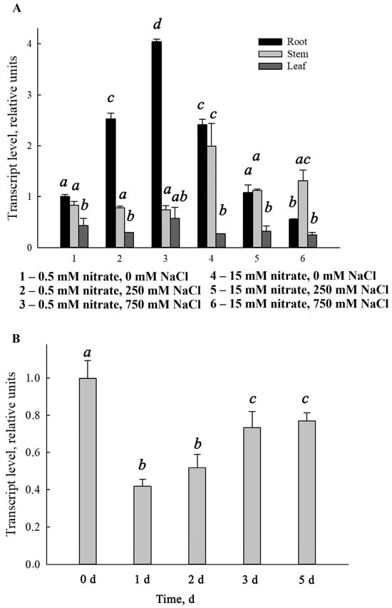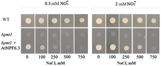 - Khramov, D.E.; Nedelyaeva, O.I.; Balnokin, Y.V. NPF (NRT1) Family Nitrate Transporter EhNPF6.3, an Ortholog of AtNPF6.3, from the Halophyte Eutrema halophilum (C.A.Mey.) O.E.Schulz: Cloning and Functional Analysis. Russ. J. Plant Physiol. 2024, 71, 41. [Google Scholar] [CrossRef]