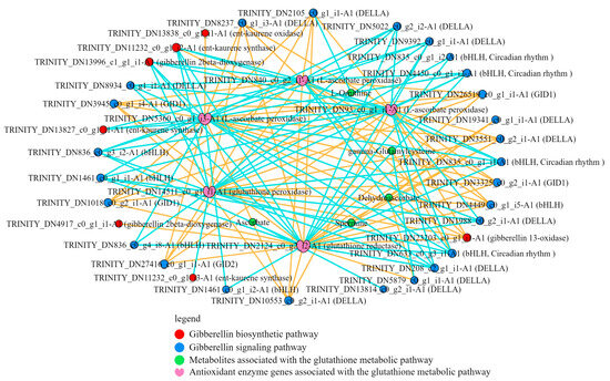 The results of correlation analysis revealed a close correlation between gibberellin biosynthesis and signaling pathways and glutathione metabolism (