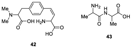 p-phenylenedialanine (42) and its dihydrogenated counterpart (43) (adapted from Schmidt et al., 1985 [49]).