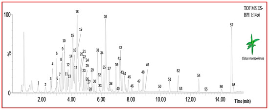 4.3. Chemical Characterization of C. monspeliensis Methanolic Extract
