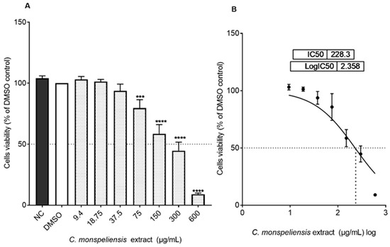 2.2. Cytotoxicity and Dose Selection Evolution of C. monspeliensis Extract