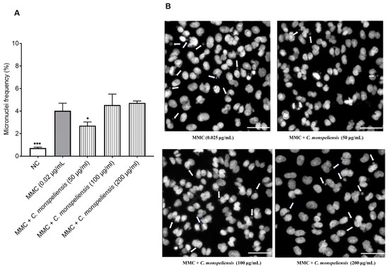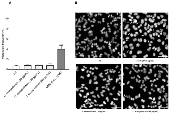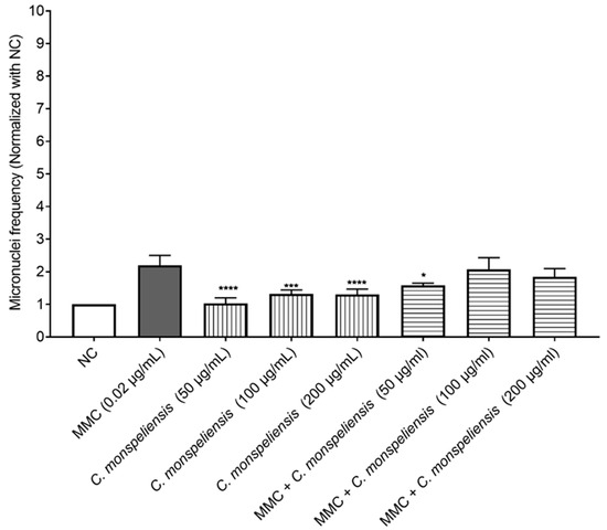 2.4. Anti-Genotoxicity Assessment of C. monspeliensis Extracts Using CBMN