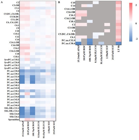 The exposure with SUF led to a slight change and a small number of significantly changed metabolites. In contrast, a concentration-dependent hepatotoxic potential of SUF was demonstrated in in vitro HepG2/3A cell models [102]. Nevertheless, the mechanisms for the hepatoxicity of SUF are still unclear.