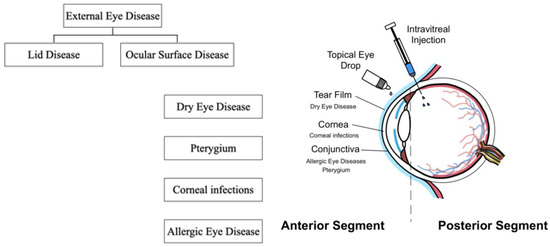 - Jackson, T.L. (Ed.) Chapter 4—External Eye Disease. In Moorfields Manual of Ophthalmology; Mosby: Edinburgh, UK, 2008; pp. 109–143. [Google Scholar]