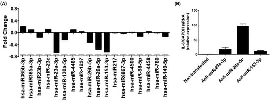 2.4. Computer-Based Prediction of miRNAs in 3′UTR of Human IL-6 mRNA and Their Experimental Validation