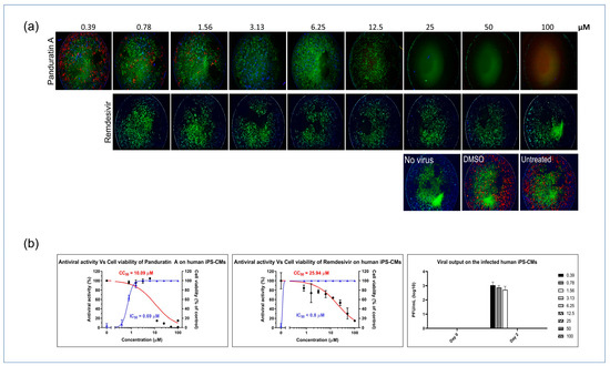 Therefore, the objective of this study is to evaluate both the cardiotoxicity and antiviral efficacy of panduratin A (panA), a plant-derived compound, against SARS-CoV-2 in human cardiomyocytes. Myocytes were derived from a previously characterized human iPS cell line, MUi019-A [17], and characterized for the expression of cardiac-specific markers and host receptors for SARS-CoV-2, followed by the development of an in vitro infectivity model. A drug discovery assay was performed for panA, a bioactive phytochemical isolated from Boesenbergia rotunda, and its antiviral activity was demonstrated. This system provides a physiologically relevant model of viral pathogenesis in human cardiomyocytes while enabling the early discovery of potential cardiotoxicity.