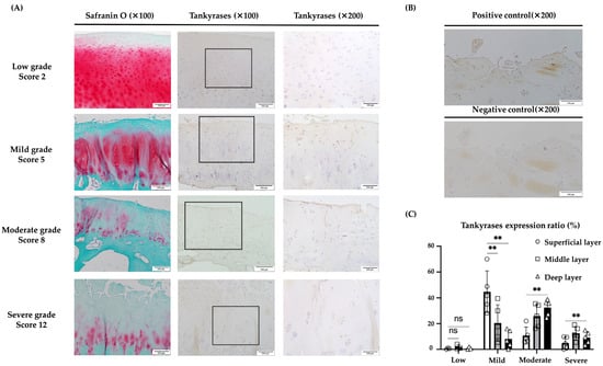 2.7. Immunohistochemical Evaluation of TNKS-1/2 in Human Articular Cartilage Tissues