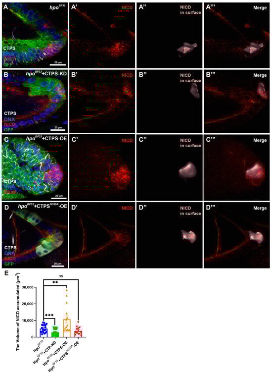 2.6. CTPS Overexpression Increases the Volume of NICD in Hpo Mutant PFCs