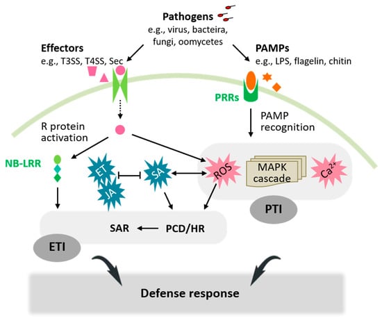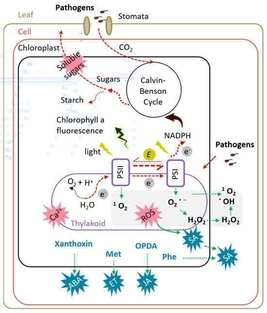 - de Torres Zabala, M.; Littlejohn, G.; Jayaraman, S.; Studholme, D.; Bailey, T.; Lawson, T.; Tillich, M.; Licht, D.; Bölter, B.; Delfino, L.; et al. Chloroplasts play a central role in plant defence and are targeted by pathogen effectors. Nat. Plants 2015, 1, 15074. [Google Scholar] [CrossRef]