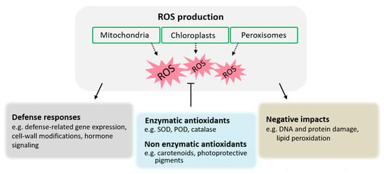 - Dumanović, J.; Nepovimova, E.; Natić, M.; Kuča, K.; Jaćević, V. The significance of reactive oxygen species and antioxidant defense system in plants: A concise overview. Front. Plant Sci. 2020, 11, 552969. [Google Scholar] [CrossRef] [PubMed]