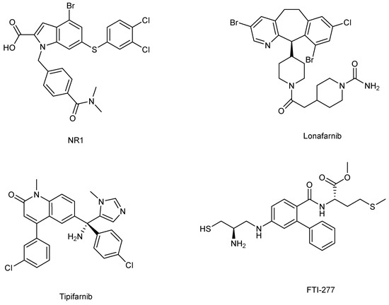 - Appels, N.M.; Beijnen, J.H.; Schellens, J.H. Development of farnesyl transferase inhibitors: A review. Oncologist 2005, 10, 565–578. [Google Scholar] [CrossRef]