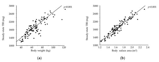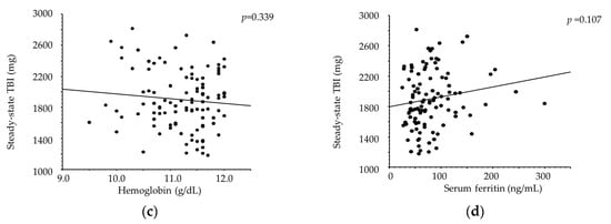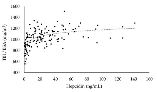 2.5. Correlation between BSA-Adjusted TBI and Hepcidin